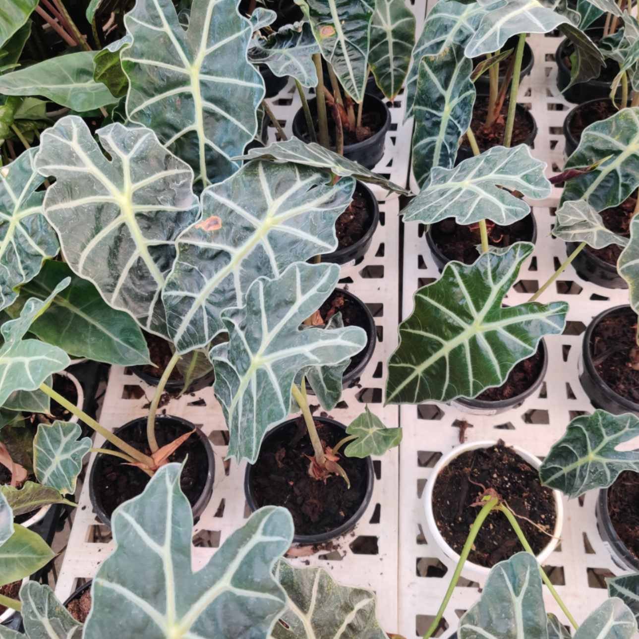 The Alocasia Polly, also known as the African Mask Plant, is a striking tropical indoor plant admired for its deep green, glossy leaves and dramatic white veining. Its unique arrow-shaped foliage gives it a bold and exotic appearance, making it a perfect statement plant for modern interiors.