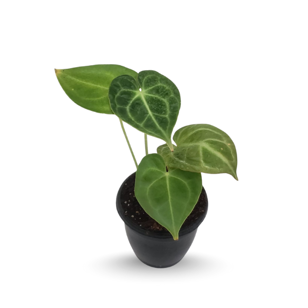 A rare collector’s Anthurium with velvety heart-shaped leaves and white veins. Perfect for modern interiors & gifting, this tropical plant adds a luxurious touch to any space.
