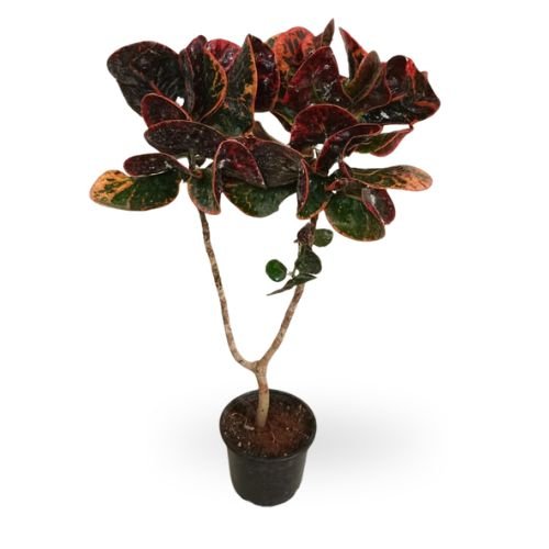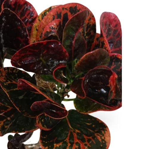 The Croton Apple Plant, botanically known as Codiaeum variegatum, is a vibrant ornamental foliage plant admired for its broad, apple-shaped leaves splashed with shades of green, yellow, orange, and red. This colorful plant instantly brightens any space and adds a bold tropical character.