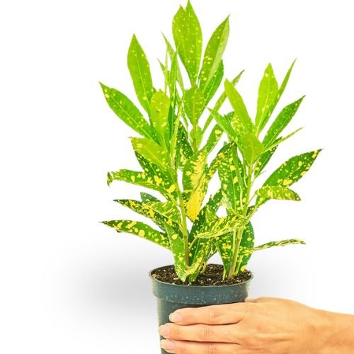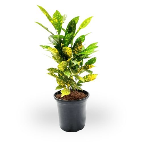 Lemon Croton ‘Gold Sun’ is a bright tropical plant known for its vibrant green leaves speckled with golden yellow spots. Its colorful foliage adds a lively and decorative touch to homes, balconies, and gardens.