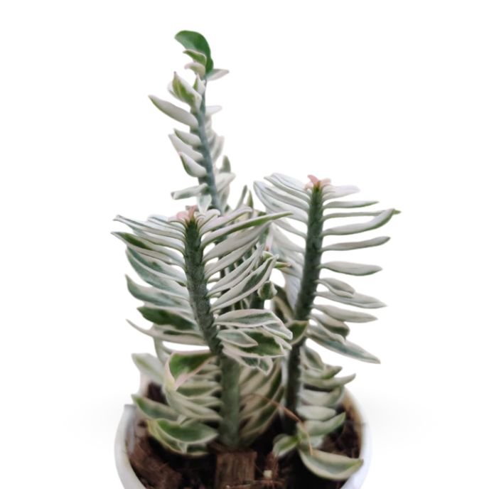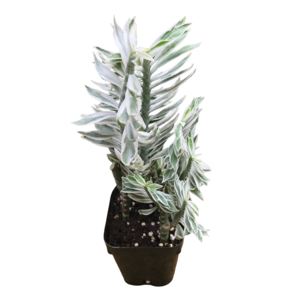 Add a burst of color and character to your space with the Pedilanthus Tithymaloides ‘Nana Variegated’, a compact beauty known for its striking green-and-cream leaves and unique zig-zag stem pattern. Its vibrant variegation and sculptural growth make it a standout addition to any indoor garden or décor setting.
