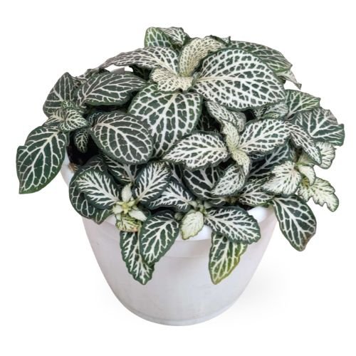 A compact and decorative plant with striking white-veined leaves, perfect for adding subtle elegance to indoor spaces. Ideal for desks, shelves, and terrariums.